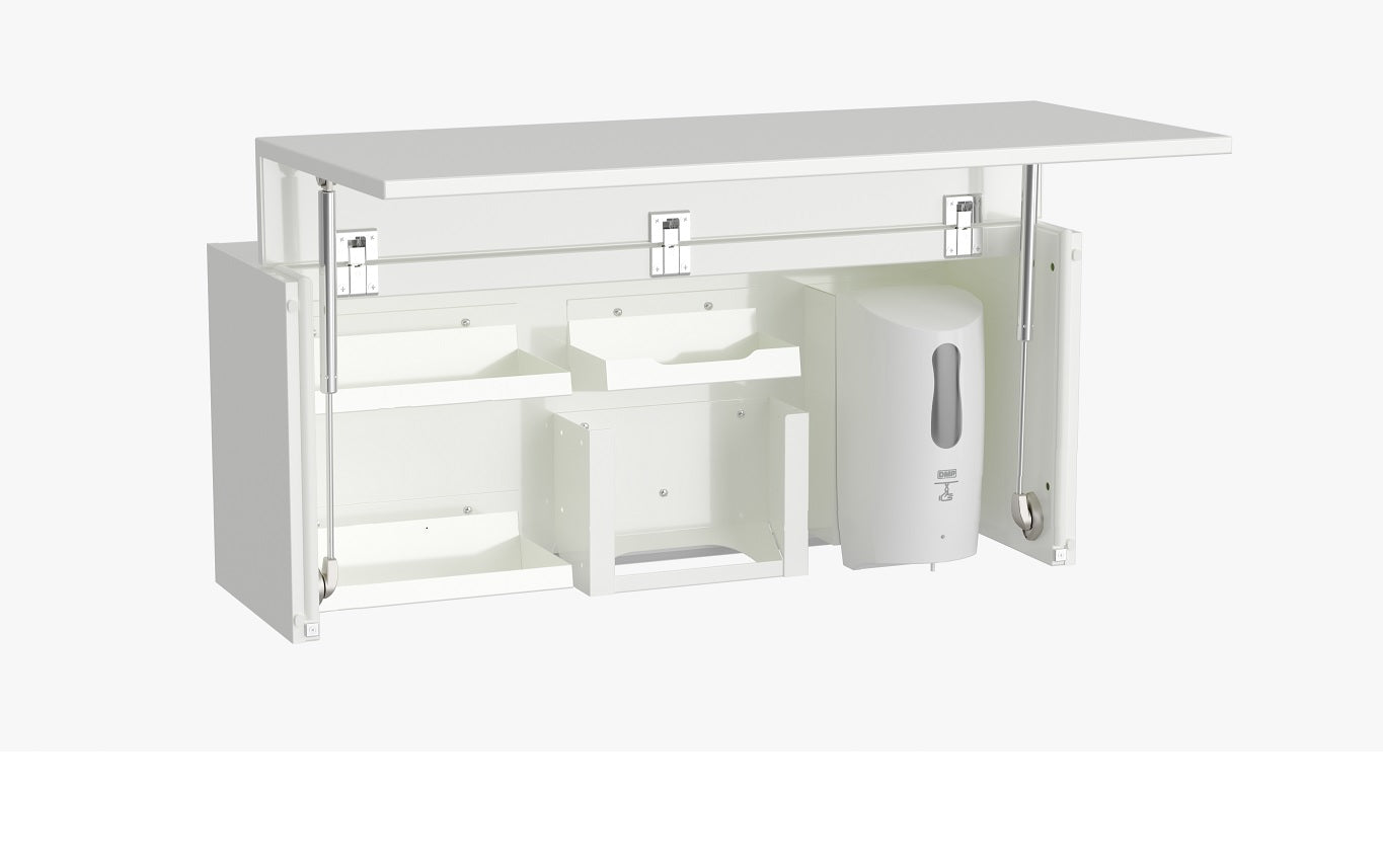 Vetrina dispenser per l'organizzazione del monouso. Completa di dispenser per sapone (a scelta in versione a destra o sinistra), ripiani per mascherine, asciugamani, guanti. Dimensioni: L750mm - P260mm - H350mm. Colore RAL9010 (possibilità di ulteriori colori a richiesta). Trasporto compreso nel prezzo. Chiamaci per completare l'ordine!