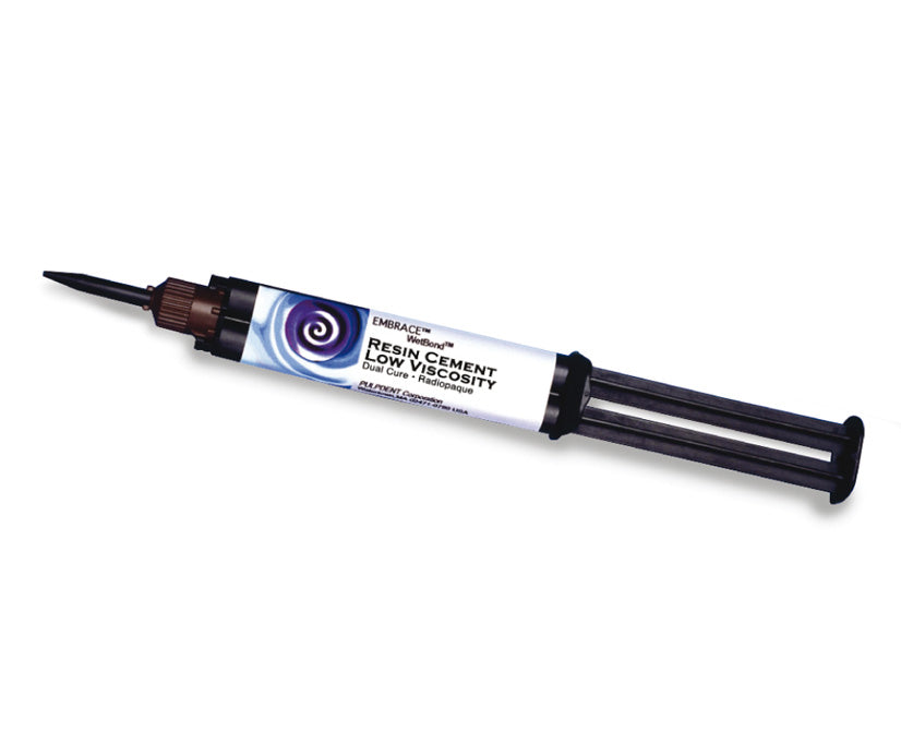 Cemento composito a polimerizzazione duale che aderisce in campo umido generando un legame chimico e micromeccanico con la dentina e lo smalto. Resin Cement è automordenzante sulla dentina, autoadesivo, presenta dei tempi di lavoro molto estesi e si applica direttamente nella cavità o nel manufatto attraverso la comoda siringa automix. Disponibile nelle versioni a bassa e media viscosità, è indicato per la cementazione definitiva di metallo-ceramica, leghe auree, CEREC e corone in ceramica integrale rinforzata, inlays e onlays, leghe non preziose, titanio e perni in fibra; adesivo per acciaio inox e materiali per splintaggio. Ricambio bassa viscosità siringa 7 gr.+ 20 puntali automix.