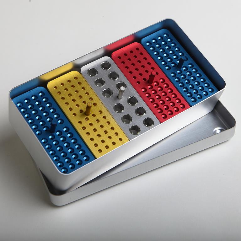 In alluminio anodizzato completo di coperchio. Misure: 204x105x54 mm. 2x48 FG + 1x48 RA + 1x48 misti + 1x12 tubetti.
