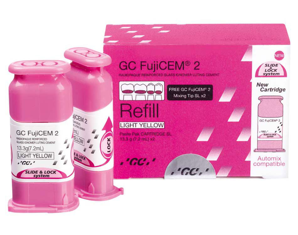Cemento vetroionomerico ibrido per il fissaggio con formulazione pasta-pasta. Ideale per la cementazione di: Restauri in metallo, zirconia, allumina e resina, inlay feldspatici e rinforzati con leucite, restauri in disilicato di litio, in particolare quando non può essere garantito un isolamento perfetto, perni in metallo, ceramica, in fibra e pernomoncone fusi.