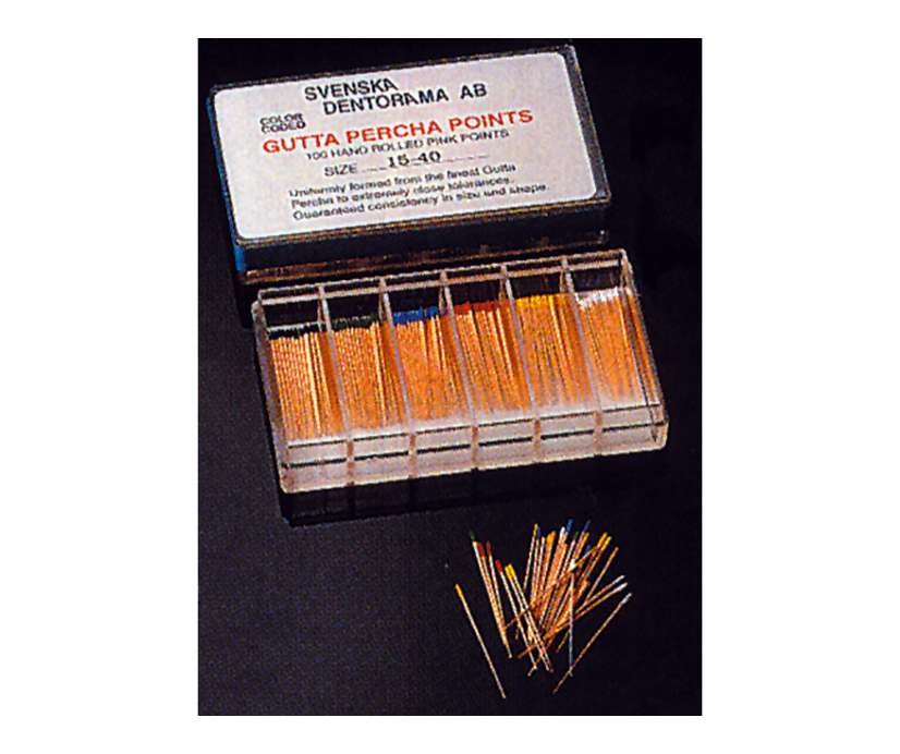 PUNTE DI GUTTAPERCHA Guttaperca di alta qualità, prodotta secondo le specifiche ISO. terminale con color ISO: Lungh. 28 mm - Ø ISO 20 - colore 'giallo' - conf. Da 100 pz.