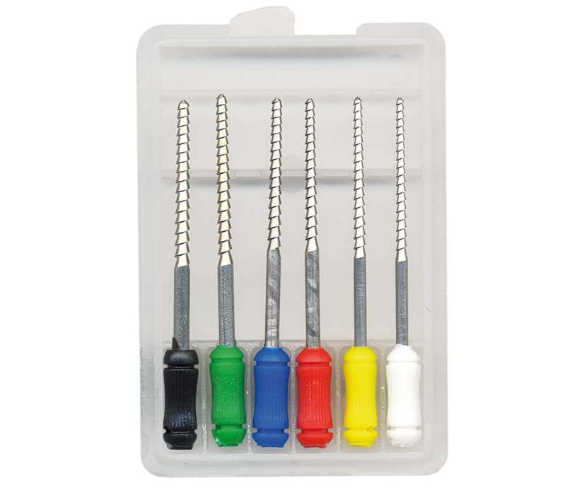STRUMENTARIO CANALARE Hedström files: Massima flessibilità con taglio molto efficiente. Costruiti con i migliori acciai inox svedesi di alta resistenza. Manico ergonomico in plastica con colorazione ISO. Sterilizzabili con tutti i sistemi fino a 180°C. Disponibili in lunghezza da 21, 25, 28 mm e forniti di stopper; Lungh. 21 mm - Ø ISO 25 - colore 'rosso' - conf. Da 6 pz.