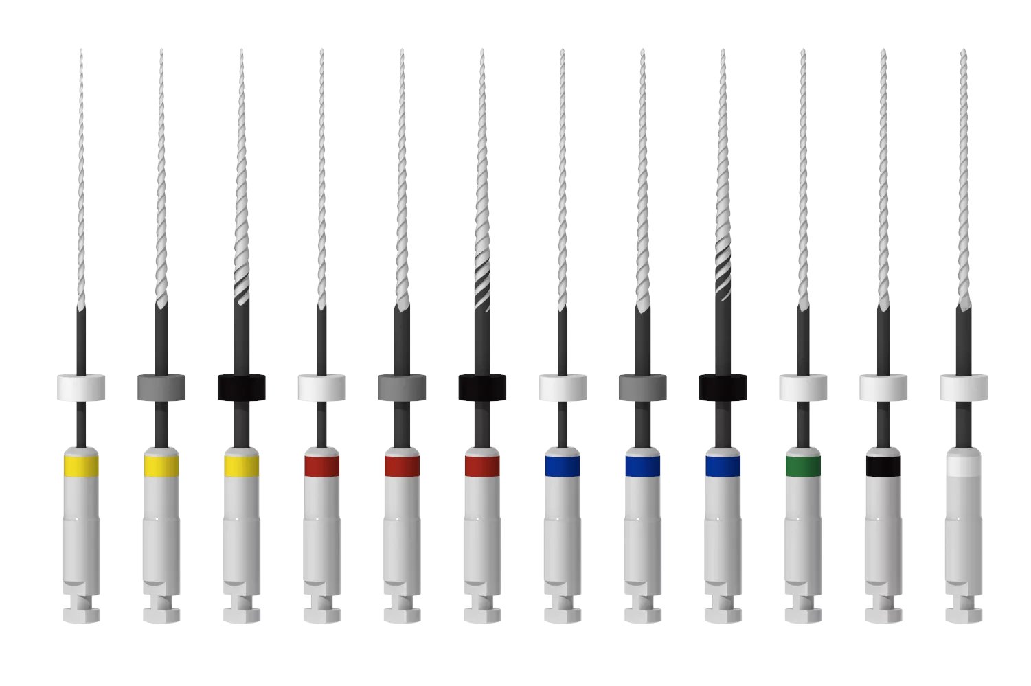 Strumento NiTi con sezione a tre lame a taglio attivo. Conicità 2%, 4%, 6%. Parte interna ampia e resistente agli stress e alle rotture. Capacità di taglio selettiva in base alla calcificazione della dentina. Velocità operativa tra 300 e 600 rpm.