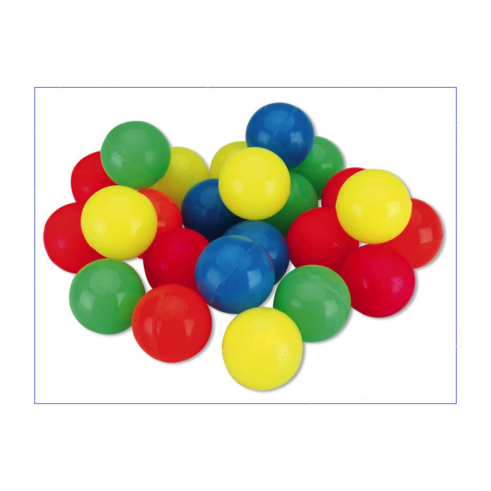 Box con 100 palline ad elevata elasticità, colori assortiti.