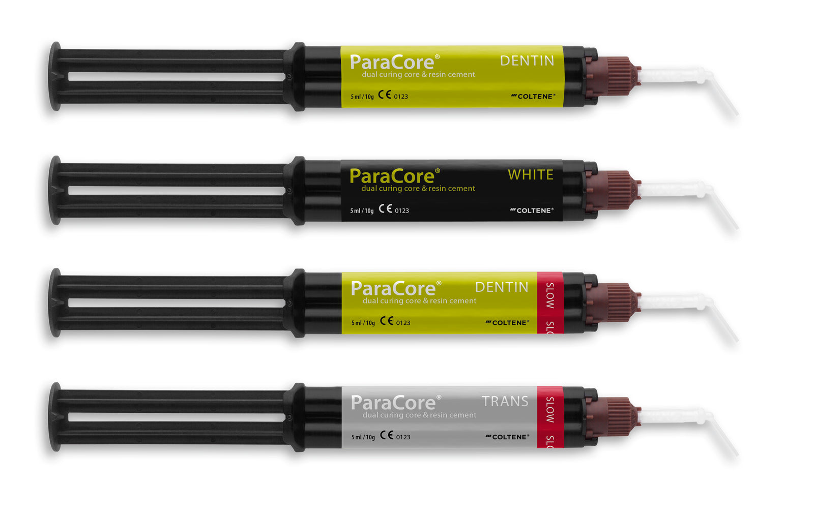 Sistema composito rinforzato con fibra di vetro, a polimerizzazione duale, radiopaco e disponibile in tre tonalità. Il rinomato materiale 3 in 1 semplifica la tecnica di ricostruzione del moncone con perno, in quanto è ideale per la cementazione di perni, la ricostruzione di monconi e la cementazione di corone e ponti. L’uso di ParaCore come materiale per la cementazione e la ricostruzione del moncone produce una “interfaccia adesiva monoblocco” tra la dentina, il perno e la corona, il cui risultato è un restauro coesivo con eccellenti qualità di durabilità e resistenza. Tempo di lavorazione più lungo con la versione SLOW.