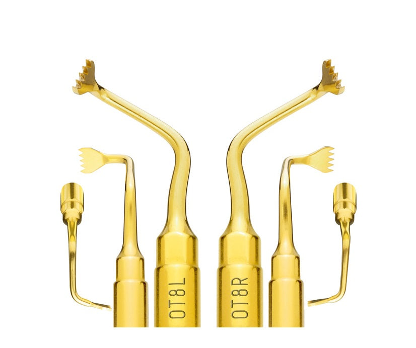 INSERTO OT8R MECTRON micro-sega angolata, 0.6 mm. AZIONE DI TAGLIO osteotomia orizzontale. APPLICAZIONE CLINICA tutte le tecniche di osteotomia del mascellare sup. e della mandibola, innesto osseo a blocco. SUPERFICIE rivestimento in nitruro di titanio. DESTRA.