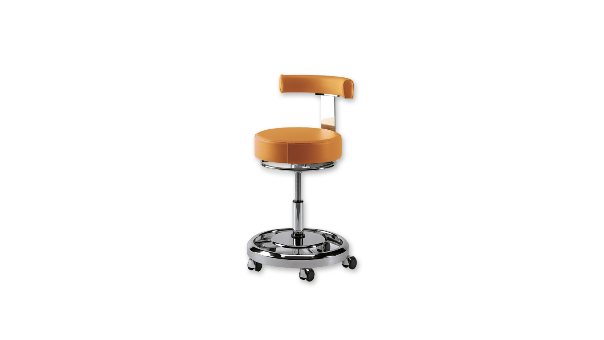 Seggiolino per operatore. Struttura in acciaio cromato e base a cinque razze dotata di cinque ruote autopiroettanti. Meccanismo operativo integrato nella parte inferiore della seduta azionabile a 360° gradi da ambedue le mani senza ricerca di eventuali comandi. Schienale avvolgente e anatomico regolabile in altezza, profondità e posizione. Superfici lisce per la più sicura igiene e pulizia. Seduta rotonda del diametro di 40x10 cm. 30 colori disponibili per modelli termoformati o cuciti. Altezza regolabile: 51- 69 cm. Peso: 15 kg. Garanzia standard 24 mesi. PER I MODELLI NON DISPONIBILI A MAGAZZINO LA CONSEGNA AVVERRA' IN CIRCA 15-20gg.