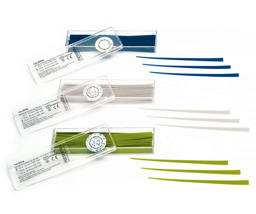 Strisce abrasive in poliestere e ossido di alluminio a forma triangolare per la protezione del punto di contatto. Un solo lato abrasivo, per sgrossatura e rifinitura. Disponibili in 3 diverse granulometrie. Altezza 1,5 mm ad una estremitÓ e 5,5 mm a quella opposta. Strisce abrasive verdi - grana fine (30micron) - 100 pz.