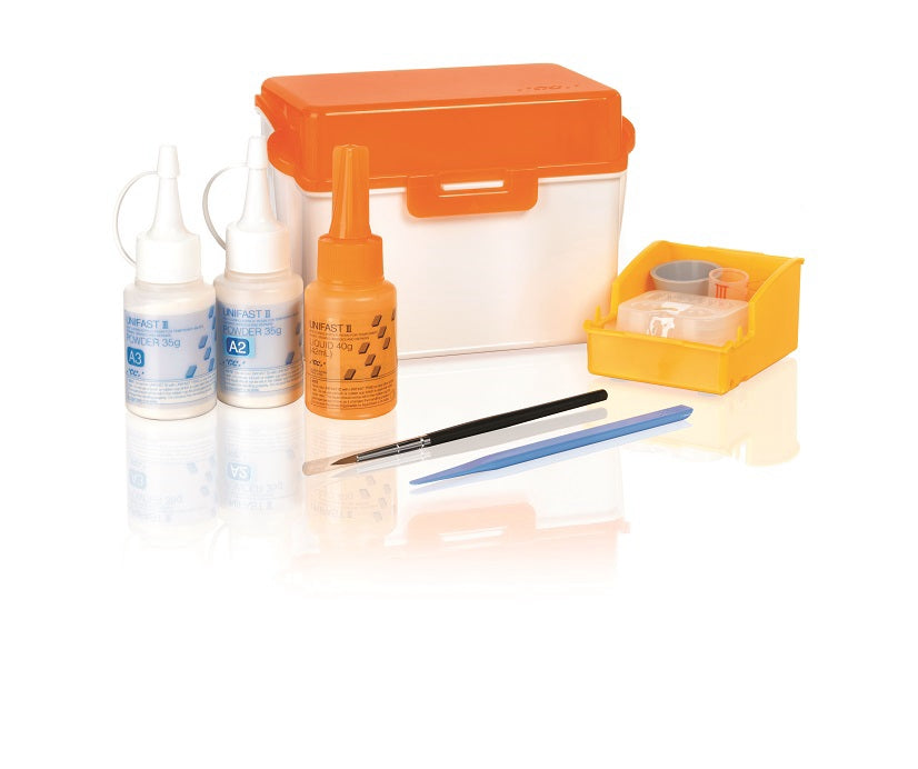 Resina acrilica autoindurente, multifunzionale per protesi fisse provvisorie a lunga durata e restauri. UNIFAST III introduce la tecnologia SURF (tecnologia di fissaggio rivoluzionaria per una superficie uniforme). Offre valori incomparabili di adattabilità, resistenza all'usura, durezza e forza di flessione senza bisogno di filler addizionali. UNIFAST III, la scelta eccellente per cementazioni provvisorie di lunga durata. Caratteristiche: ideale per le tecniche di pennellatura e colata. Composizione perfettamente equilibrata per cementazioni provvisorie di lunga durata. Gradazioni di colore per soddisfare i clienti più esigenti.